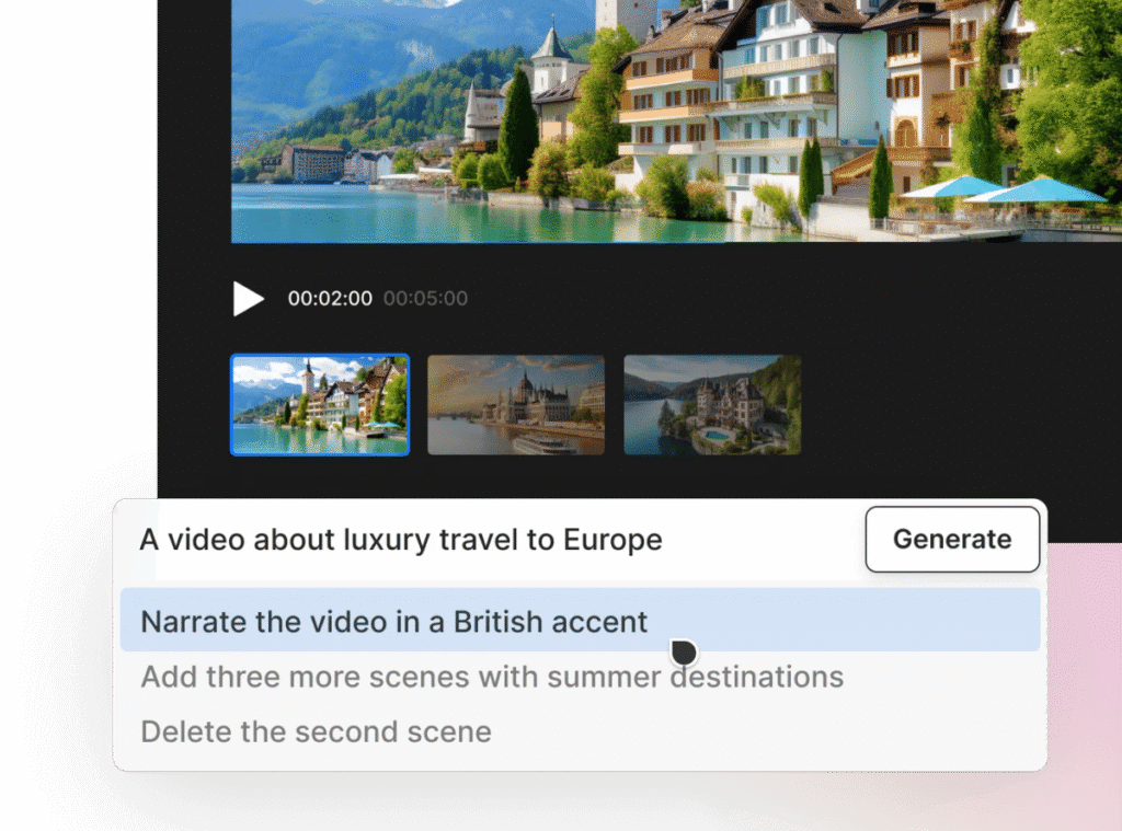 You don’t need to be a video editor: just type your vision, and watch AI build your story—scene by scene, voice by voice, moment by moment.